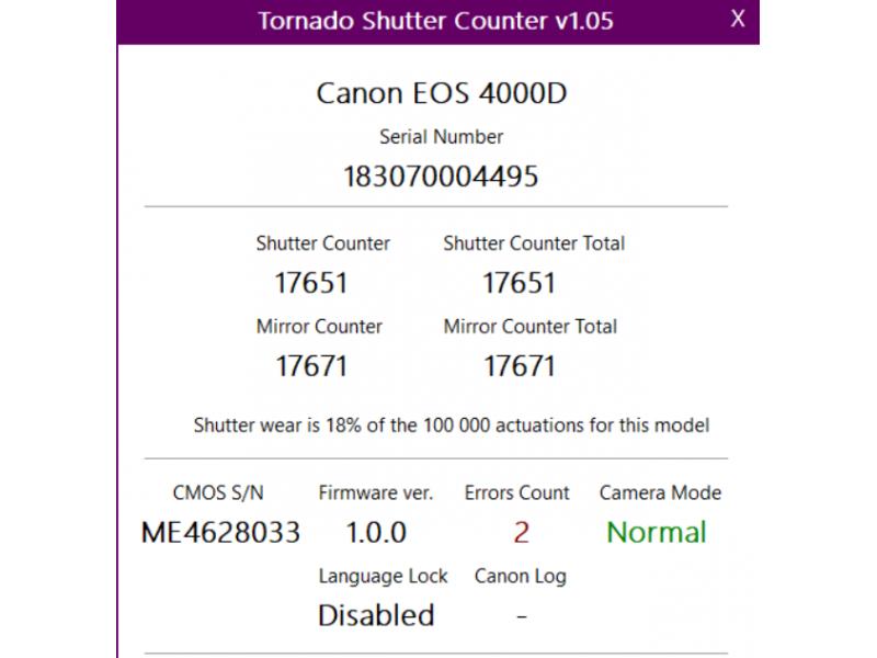 Niski przebieg migawki 17,6 tyś