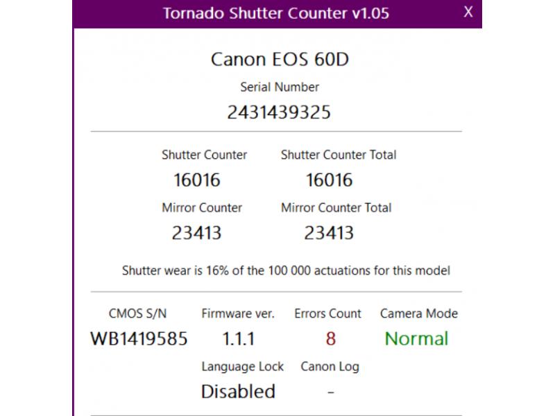 Przebieg migawki to jedynie 16 000 zdjęć – wynik znacznie poniżej średniej dla tego modelu.