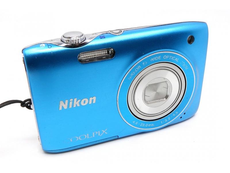 Stylowy, kompaktowy aparat cyfrowy Nikon S3100 w kolorze niebieskim.