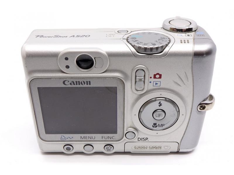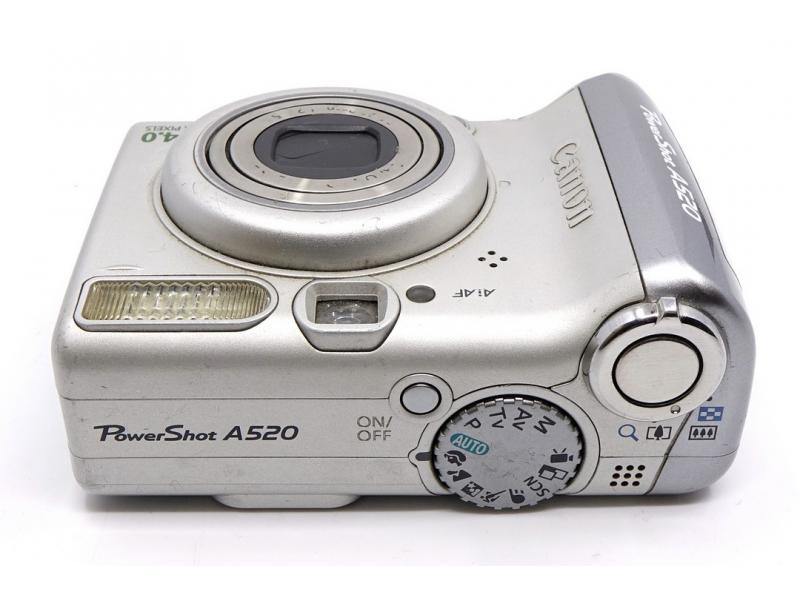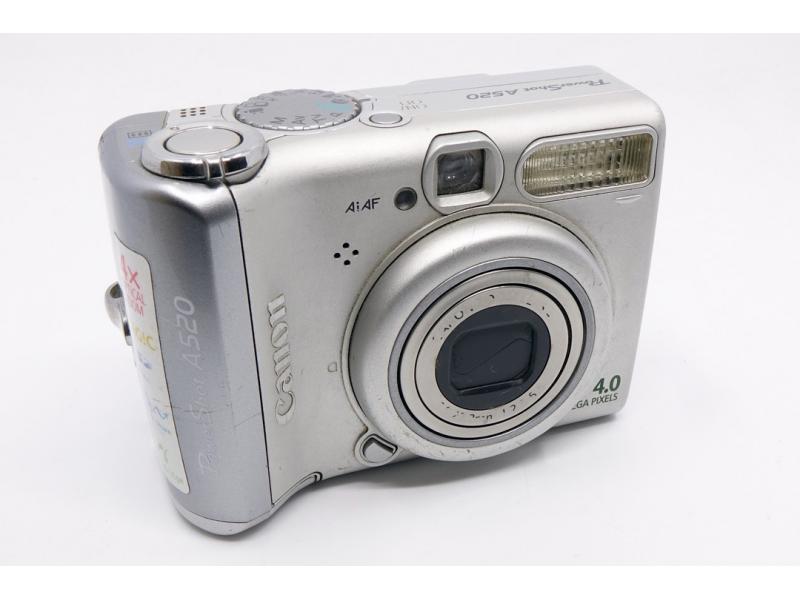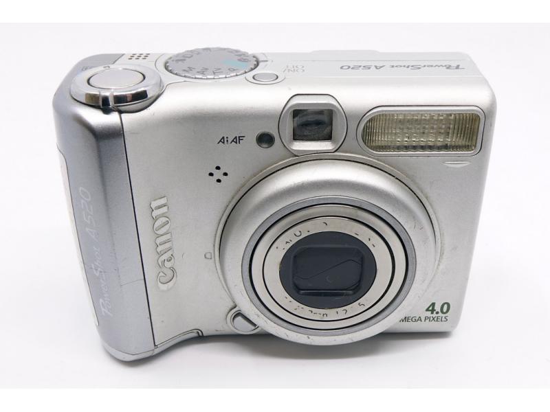 Aparat cyfrowy Canon PowerShot A520 w kolorze srebrnym.